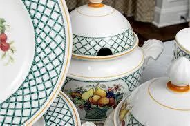 12 Playos, 12 postre, 12 Bowl/hondo 20cm, 12 te c/plato, 12 café c/plato, 1 fuente redonda, 1 Ensaladera, 1 Fuente oval, 1 Salsera, 1 Tetera. 1 azucarera, 1 lechera